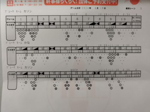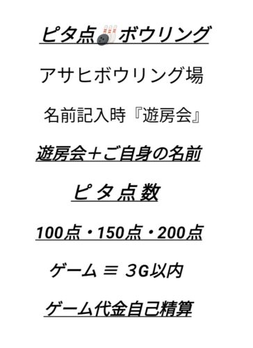 この遊技のボウリング代はボウリング場で自己清算のゲーム内容です