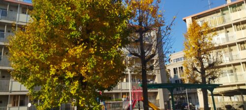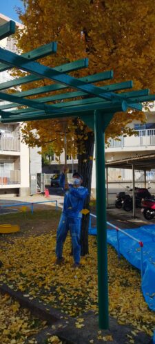 12月1日~7日集会場公園周りイチョウ葉清掃作業